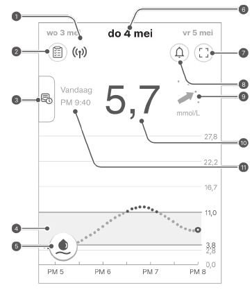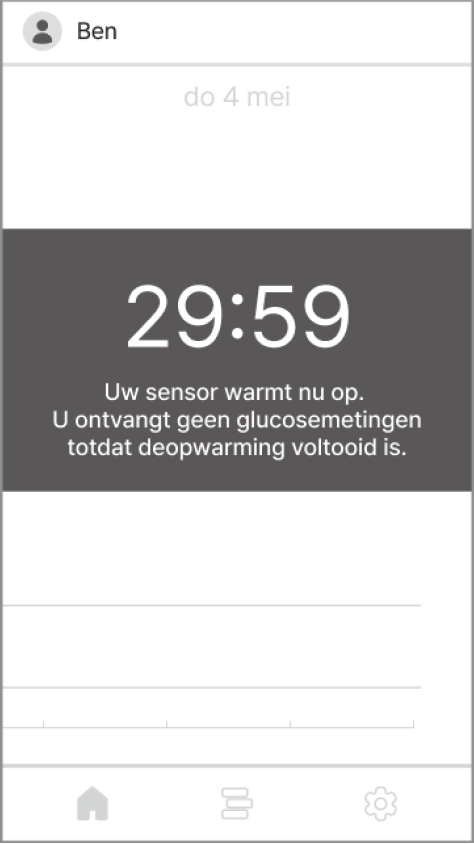 Zodra u klaar bent met het configureren van de glucosewaarschuwingen, begint de 30 minuten durende stabilisatieperiode van de sensor.