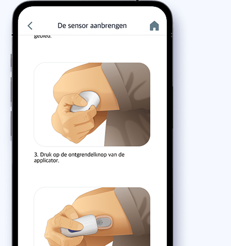 Log in op de CareSens Air-gebruikersapp op uw slimme apparaat, tik op Voorzorgsmaatregelen voor gebruik > Sensorinformatie invoeren.
